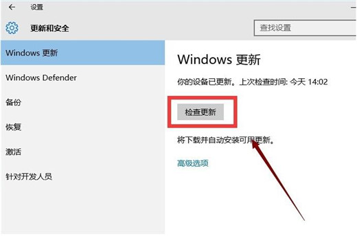 3、点击系统更新下的检查更新,将所有的更新全部安装后重启