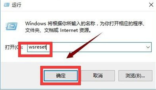 4、如果未解决,就按下win+R快捷键,打开运行窗口,输入wsreset,点击确定。重置应用商店