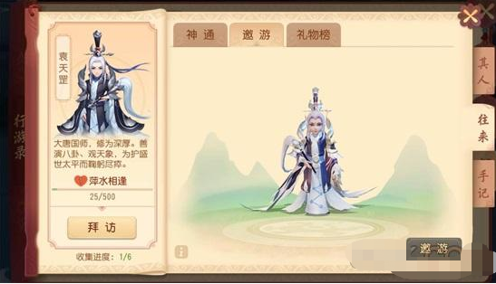 随着好感度提升可以解锁人物传记,和NPC关系达到流水知音后就可以在大世界邀请他一起游玩啦~每次陪玩10分钟,不够游玩结束也会休息3分钟才能再次接受邀请,NPC也需要休息,有的NPC还有不同服饰可供选择。