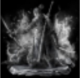 奖杯图案:这个奖杯的图案还有意思,狼盘坐在地上,并且造型和“荒芜寺院的法师”非常相似;而另一方面两人不仅都失去了左臂,并且服装配色方面都极为相似。