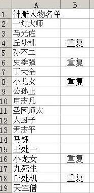 =IF(COUNTIF($A$2:$A$21,A2)》1,“重复”,“”)