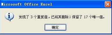 3.单击“确定”。Excel将把筛选后的结果放置到C2:C18中,去掉了其中的3个重复值。