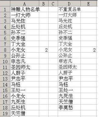 3.可以看到Excel已自动将重复值去掉,并拼音顺序将名单排好了。
