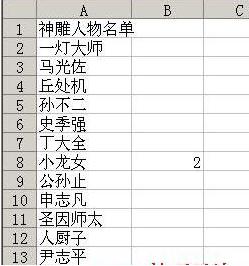 1.由于数据在A列,以其右侧的B列为辅助列。在B列对应A列数据区域中的任一单元格中输入一个数值,以便Excel进行合并计算。如在B8输入一个数值“2”。