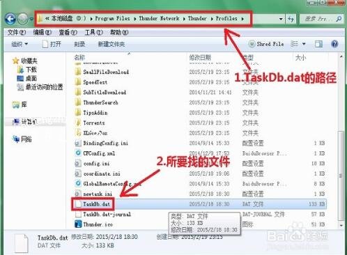 3、在迅雷安装目录打到TaskDb.dat文件,如X:Program FilesThunder NetworkThunderProfilesTaskDb.dat(X为你迅雷的安装分区)。