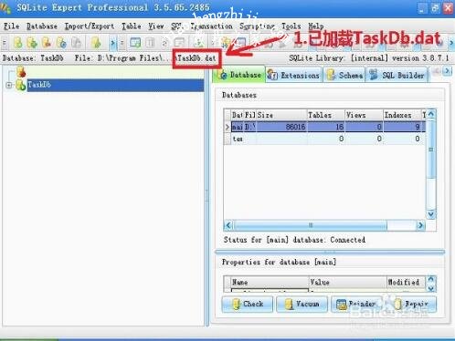 4、打开SQLite Expert Professional,加载TaskDb.dat文件。