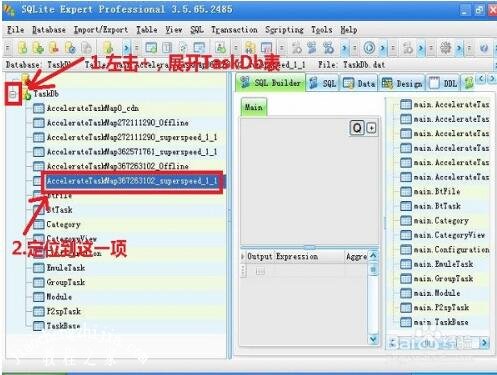 5、在SQLite Expert Professional中展开TaskDb,找到左边SQL表中 AcclerateTaskMapxxxxsuperspeed 一项(若有多个,是按xxxx升序排列的,最下面的就是最近的)。