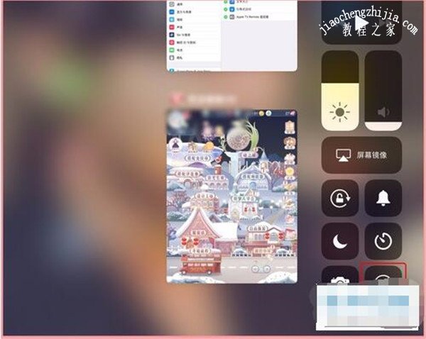 4、手指从iPad屏幕上方,慢慢下滑打开快捷中心,长按右下角的屏幕录制快捷方式(同心圆图标)