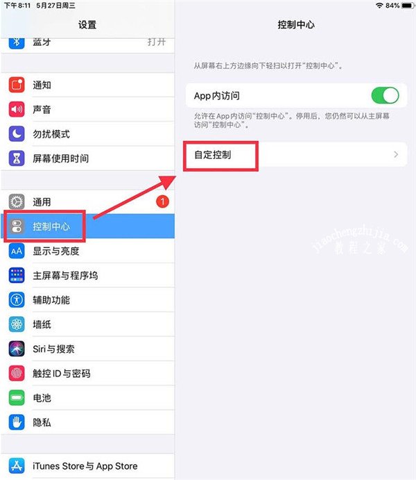 1. 第一步,请大家打开自己的iPad,点击其中的【设置】图标,进入主界面,我们会在其中看到【控制中心】这一项。