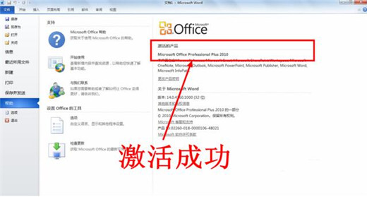 密钥激活步骤:打开任意office2010,点击左上角文件—帮助--更改产品密钥--输入密钥