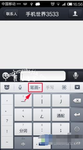 3)选择笔画时,也要点击选择到笔画,这时显示的输入状态是笔画;(备注:笔画本身是没有半屏和全屏之分的)(如下图所示)