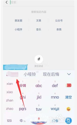 进入打字界面,我们先输入要删除的这个记忆词语,出现以后长按。