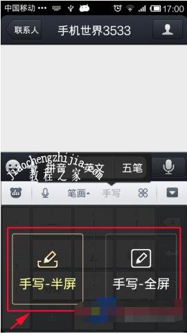 5)选择手写时也是如此,可以选择半屏书写或者全屏书写;(如下图所示)
