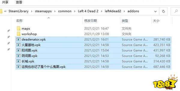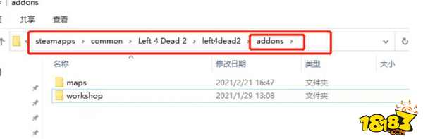 1、求生之路2的地图文件放在“addons”文件夹,以我为例,放的文件夹如下图所示。