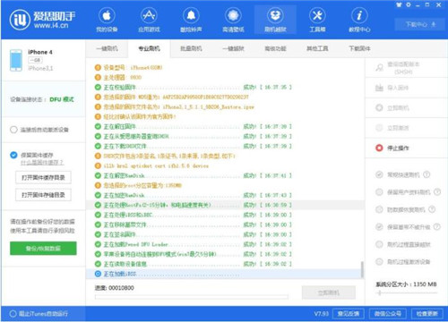 导入固件以后,设备进入DFU模式,按需求选择常规快速刷机、保留用户资料刷机、防数据恢复刷机、保留基带不被升级中任意一种适合自己的刷机方式进行刷机。各机型进入DFU方法如下: