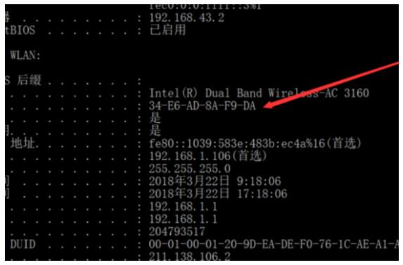 3、如图所示,物理地址即我们电脑网卡的真实MAC地址,接下来,教大家如何修改计算机网卡的物理地址。