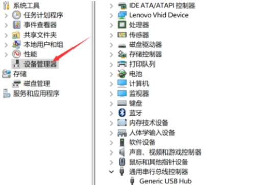 5、弹出来的计算机管理窗口上面,选择如图所示的设备管理器。