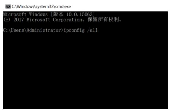 2、命令提示符窗口里输入ipconfig/all,回车,即可显示出当前电脑的网络适配器,笔记本电脑通常都有两个网卡,一个有线,一个无线。