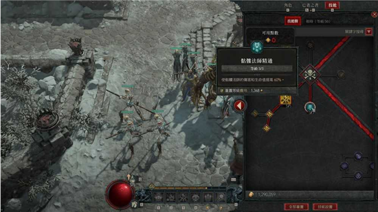 同样开荒可以先点1级主动,点出分支后点满旁边的骷髅法师精通。
