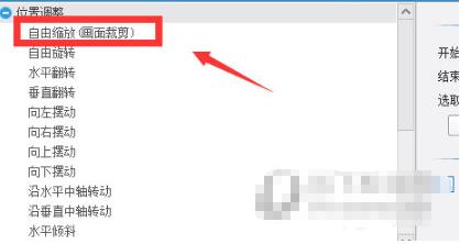 点击画面风格后,面页自动跳转,面页跳转后,我们找到自由缩放(画面裁剪)并且双击