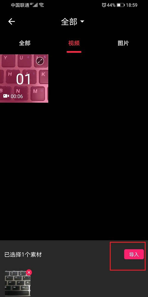 2、进去全能剪辑界面之后,选择视频,点击导入
