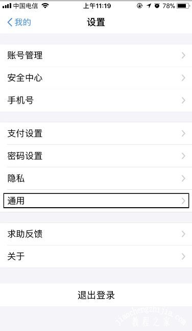 3、随后就进入到支付宝的设置页面,在这个页面的下方我们找到“通用”选项,并点击。