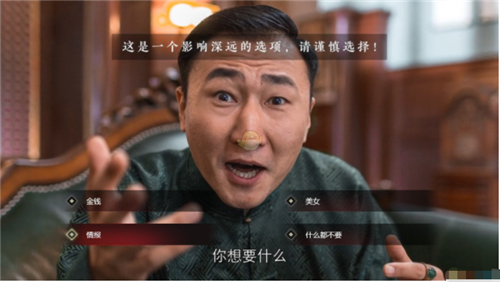 在《第三章·生死途》中,我们就会用到“自保的感慨”。在与胡一彪进行“生意”的时候,如果没有获得“自保的感慨”,胡一彪就会指出肖途别有用心,导致Bad End,如果有“自保的感慨”,就会说出名言——“什么叫自保,自保就是让自己的口袋饱起来。”,这时就可以成功的进入到正确路线中。
