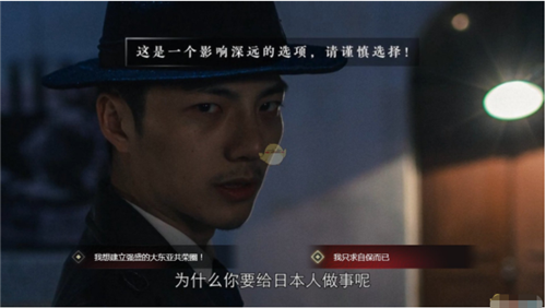 在《第二章·狩猎者》中,在小顾死亡之后,我们会受到地下党的偷袭,李峰会帮助我们击退地下党,这是会询问我们为什么要为日本人工作(节点【李峰的感慨】),这时候选择【我只求自保而已】,就可以获得关键剧情【自保的感慨】。