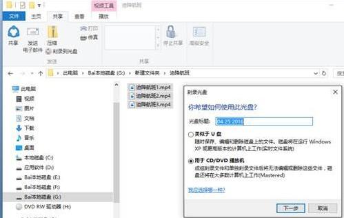 3、进入到刻录到关盘界面后,给光盘起个好听的名字,默认是时间,尽量选择英语字符,然后点击下一步,将文件读写到光驱目录中;