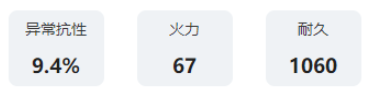 初始EN+100;受到范围伤害时,有25%概率为我方全体附加伤害吸收护盾,护盾值为各自耐久上限的30.4%,持续15秒,每波战斗仅能成功触发2次。