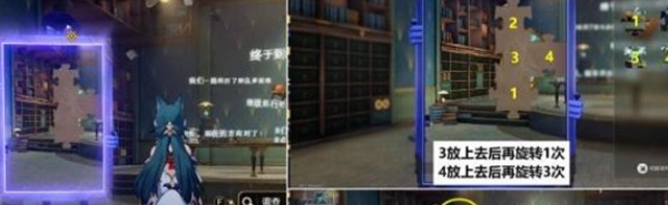 3、接着从3号任务门的位置进入后进入4号位置房间,完成房间内的拼图,再从左上角的镜子位置过剧情;