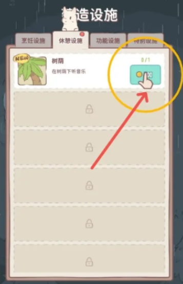 2、接着选择休息设施的页面,找到【扩建森林】的选项,消耗货币就能扩建。