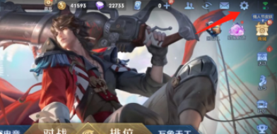 1、打开【王者荣耀】游戏主界面,点击页面右上角【设置】。