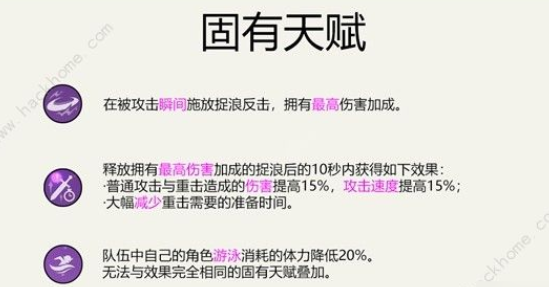 天赋一:被攻击的瞬间按元素战技可以造成最大伤害。