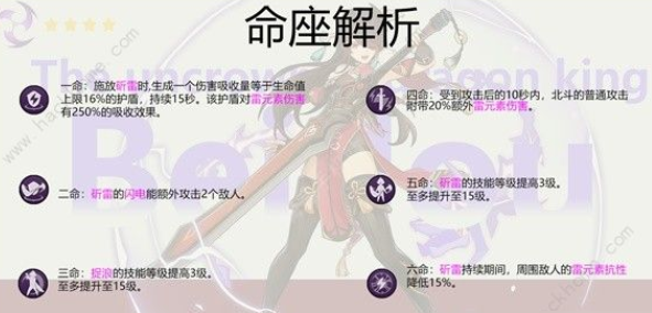 六命可以降低元素爆发期间周围敌人的雷抗。