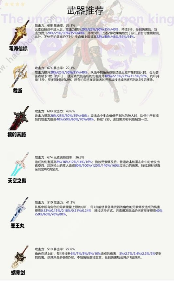 北斗的武器选择范围广泛,可以选择输出/充能辅助向的大剑武器。