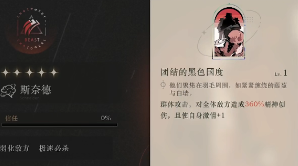 大招“团结的黑色国度”则是一个AOE伤害技能,初始伤害倍率就有360%,并且还伴随有激情+1的特殊效果,这一效果是在大招伤害打完之后触发的,多出的这些激情能够让斯奈德下一次的大招更快进行充能,充能完毕后就可以再度施放大招了,可以说正是因为有了这个技能,斯奈德才能够更加频繁的施放大招,同时她的输出效率也才能得到显著提升。