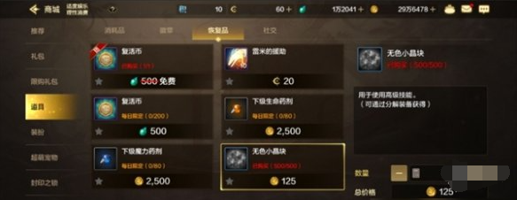 无色小晶块可在商城花费125金币购买,每天可购买500个。