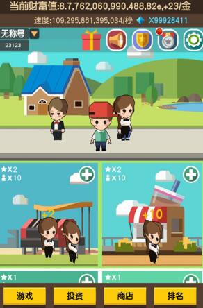 我要当首富2是一款模拟经商的休闲游戏,该游戏有着贴近现实的投资经营玩法,还有这各种赚钱手段等你来尝试。寻找优秀的打工人,加入你的团队为你收益,增加财富,不断的壮大公司,稳赚不赔。玩家的每一次选定投资都会带来新的转机,找到经营投资的思路,你可以真正的体会到从一无所有到富甲天下。游戏的代入感非常强,可以有效培养玩家的商业头脑。