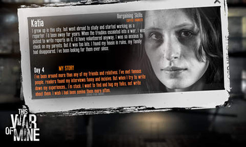 这是我的战争破解版是款生存类的射击游戏,由于战争的影响,所以你需要在废墟中生存,坚持45天即可完成生存任务,或者收集8颗钻石然后偷渡出去,当然这两种方式都很难,但是越有挑战性的任务,游戏过程越好玩,并且主角会有多种结局走向,战争所带来的创伤不仅在肉体,心灵上的创伤才是最严重的,至于战争会给你带来多大的影响呢?让我们在游戏中寻找答案吧!