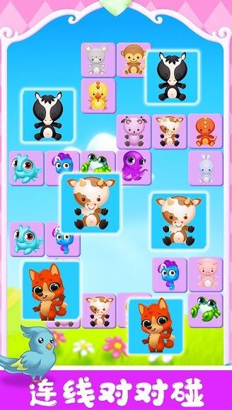 宠物对对碰是一款休闲益智游戏,玩家只要在屏幕上轻点滑动将相同的动物连线消除就可以了,简单又好玩,动动手指就能开启愉快的时光。里面有很多关卡等你来挑战,在无聊的时光或是心情不愉快的时候不妨试试这个,解压又能打发时间,是每个年龄段都适合的游戏。
