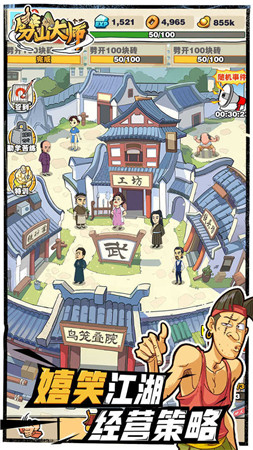 2、原创剧情,嬉笑江湖,成为武馆馆主,夺回被抢走的牌匾,广收弟子,光复武馆。