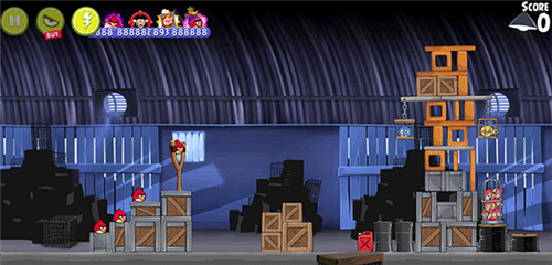 射击的目标瞄准障碍物的下部。同时要让你的红色小鸟在最后击中最右边的笼子,然后让整个障碍物失去平衡往左边下落。用一个小鸟完成任务即可三星。