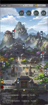 3、管理自己的武学门派,包括建设建筑、提升门派设施、升级技能和资源产量。