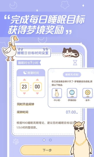 2.并且这款游戏还会帮助使用者调节自己的睡眠时间,养成早睡早起的习惯哦。