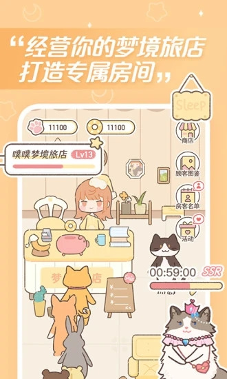 梦境旅店是一款很治愈的休闲游戏,这里有着很特别的玩法,每天养成好睡眠就能获得奖励,玩家可以设置好每日的睡眠时间,完成睡眠目标就能获得奖励,这些奖励就可以用来经营打扮自己的旅店。每出去一次,游戏就会在后台进行挂机,回来就能获得非常多的奖励。游戏的画风非常梦幻可爱,还能哄很多种小动物入眠哦,真的很难能让人拒绝。