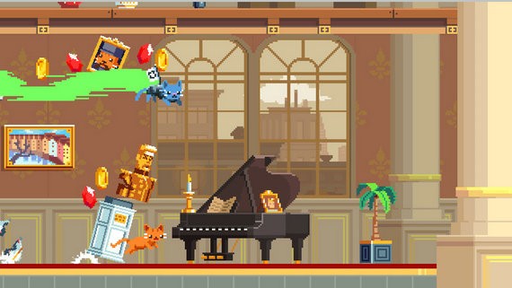 1、玩家将扮演一只猫,通过跳跃破坏屋内的物品并躲避危险。操作难度中等,快感十足!轻松诙谐的BGM,配上满目狼藉的屋子,莫名的喜感;