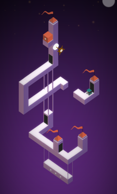 旋转:圆形的滑动,这种机关在游戏中很多,变化也多种多样,最大的特色就在于,如果你在某个视角看的路线已经断了,但是如果你 旋转下视角,也许其他视角就会让你噶虐,路线已经是完整的了,那么艾达也可以行走的。