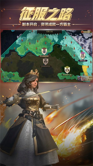 2.日常任务可帮助玩家快速获取资源奖励,与友军一起建立军事盟友关系,提升自己的军事实力,最终成为一国之王,征服四方,统治天下!