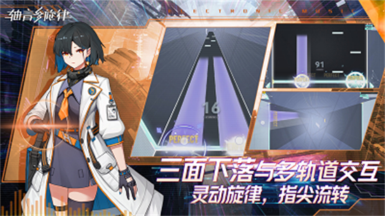 3.会有几条道路,各种各样的音符会从上到下出现,及时点击清除。